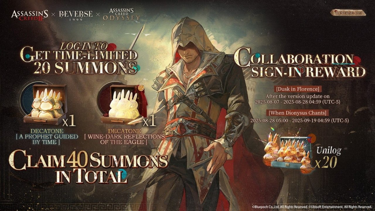 In an event that has been building since its announcement, the highly anticipated collaboration between the time-traveling strategic RPG Reverse: 1999 and Ubisoft’s iconic Assassin’s Creed franchise is finally here. We’ve spent time with the new update, which introduces three legendary Assassins—Ezio, Kassandra, and Alexios—and brings players to a new historical setting: Renaissance-era Florence and Athens. The crossover is a masterclass in a gaming partnership, blending the core mechanics of Reverse: 1999 with the rich lore and aesthetics of Assassin’s Creed in a way that feels natural, not forced.
